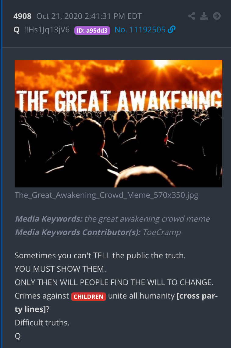 The amount of misinformation on Q is astounding. I see things on X daily like “Q has been saying this for years” and it will be something Q never talked about. But ultimately, people recognizing Q as being a staple of truth is a great thing. Q was telling us about Epstein Island before it ever became mainstream.