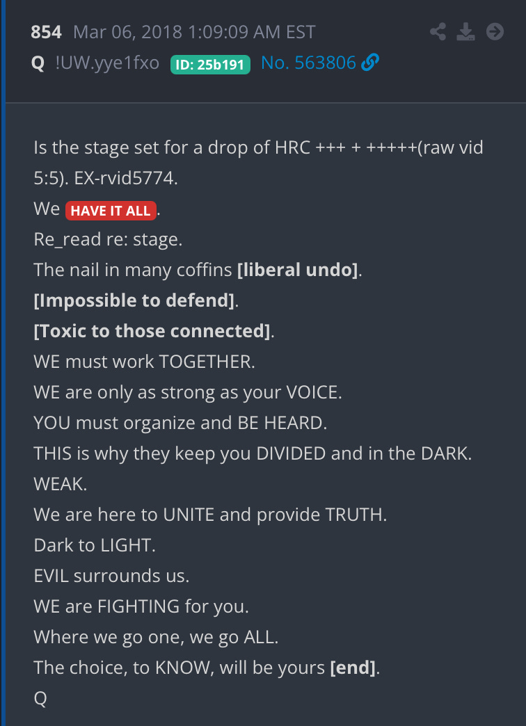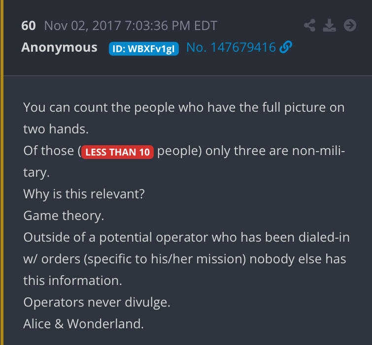 —‘In my mind, everything that’s happened in the last 10 years only makes sense if Q is real.’ That’s because Q is an operation plan, with many facets (including embedded Psyops and quantum elements) to ensure success and to prevent the cabal from determining the moves. It is brilliant using in the tactic for normal people to do their own research, find the trails, infiltrate for the opposition’s agenda, operate as whistleblowers, identify and obtain documents to reveal and assemble as evidence.